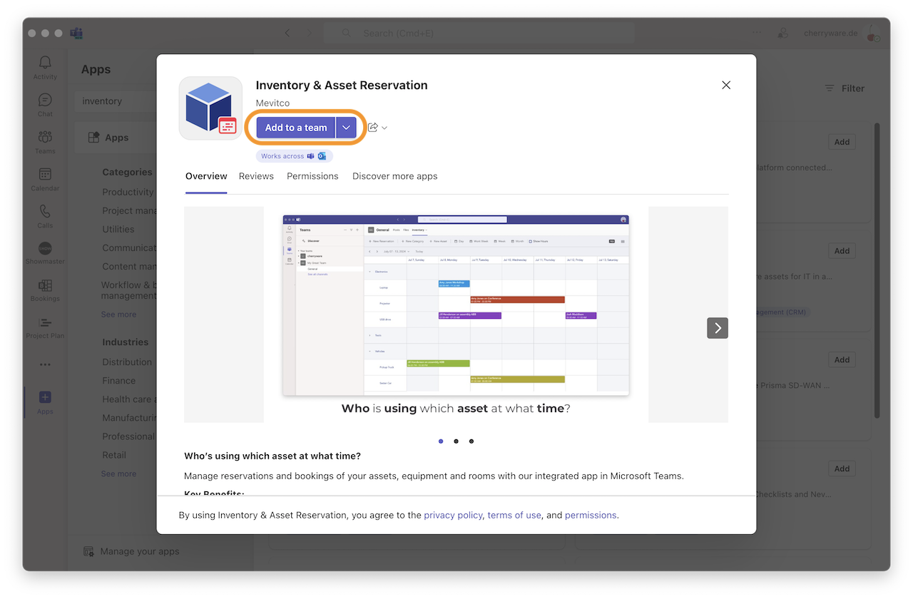 Install in Microsoft Teams - Press Add to a team.